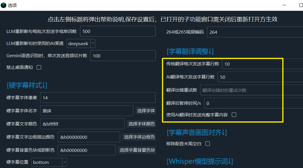 等时,或者使用了AI翻译渠道但没有选中 发送完整字幕