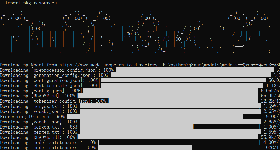 - 会出现一个黑色窗口,自动开始下载模型文件和依赖库。