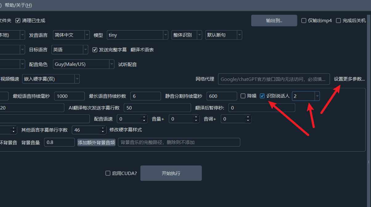 该复选框后边的数字是确定要识别的人数,默认不限制,如果你已知说话人,建议选择某个数字(2-10),将能提高识别准确度