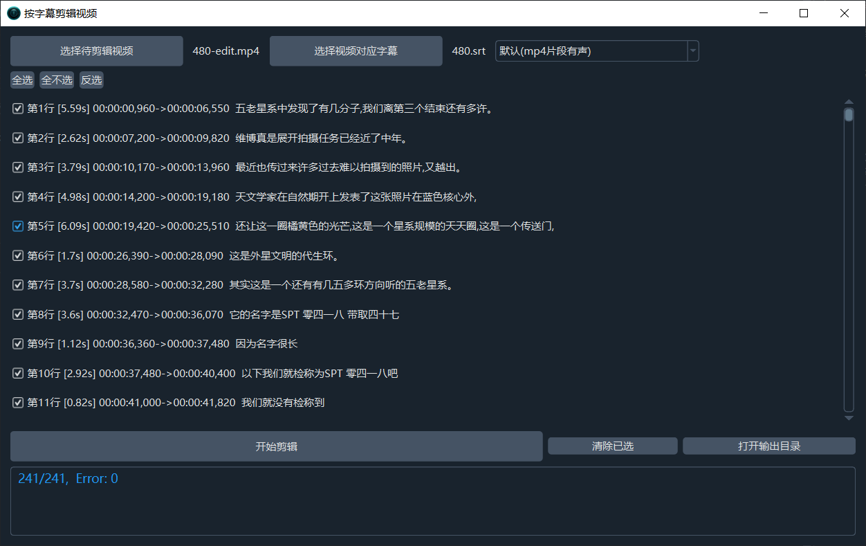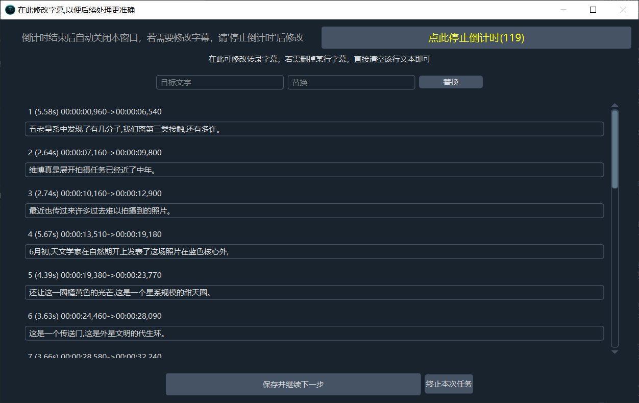 When only one video is selected, after the voice transcription is complete, a separate subtitle editing window will pop up. You can modify the subtitles here to ensure greater accuracy in subsequent processes.