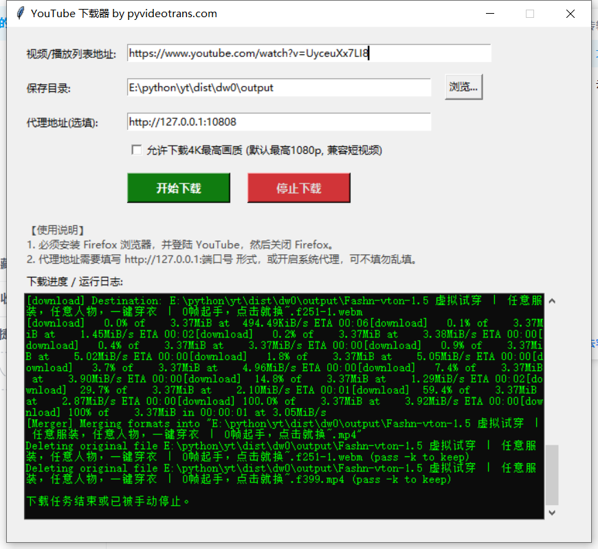 - 必须安装 firefox 浏览器,并登陆 youtube账号,然后关闭firefox浏览器,以获取cookie,没有cookie基本不可能成功