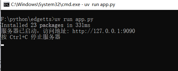 cmd窗口,然后再次运行uv run app.py。 如果你觉得这样有点麻烦,可以创建一个快捷启动文件:在你存放