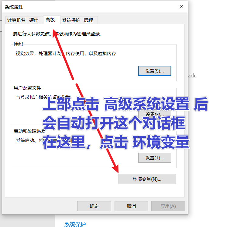 3. 打开环境变量 在弹出的“系统属性”小窗口中,点击右下角的【环境变量】按钮。